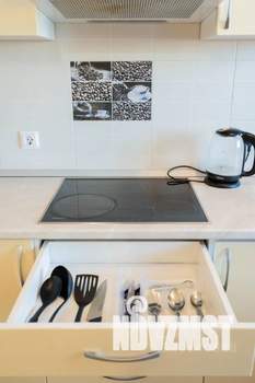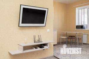 Чисто. Есть холодильник, стиральная машина, микроволновка, электрический чайник. Посуда. Утюг, гладильная доска, сушилка. Шкаф